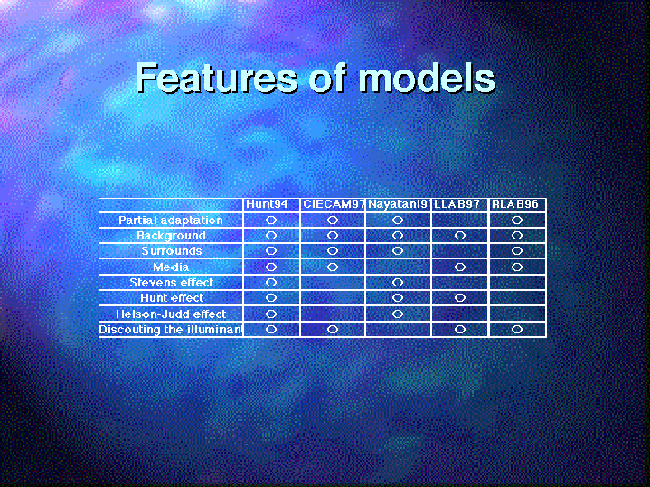 This table shows the features of models.