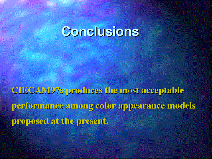 As a total performance, the CIECAM97s shows the most acceptable performance among color appearance models proposed so far.